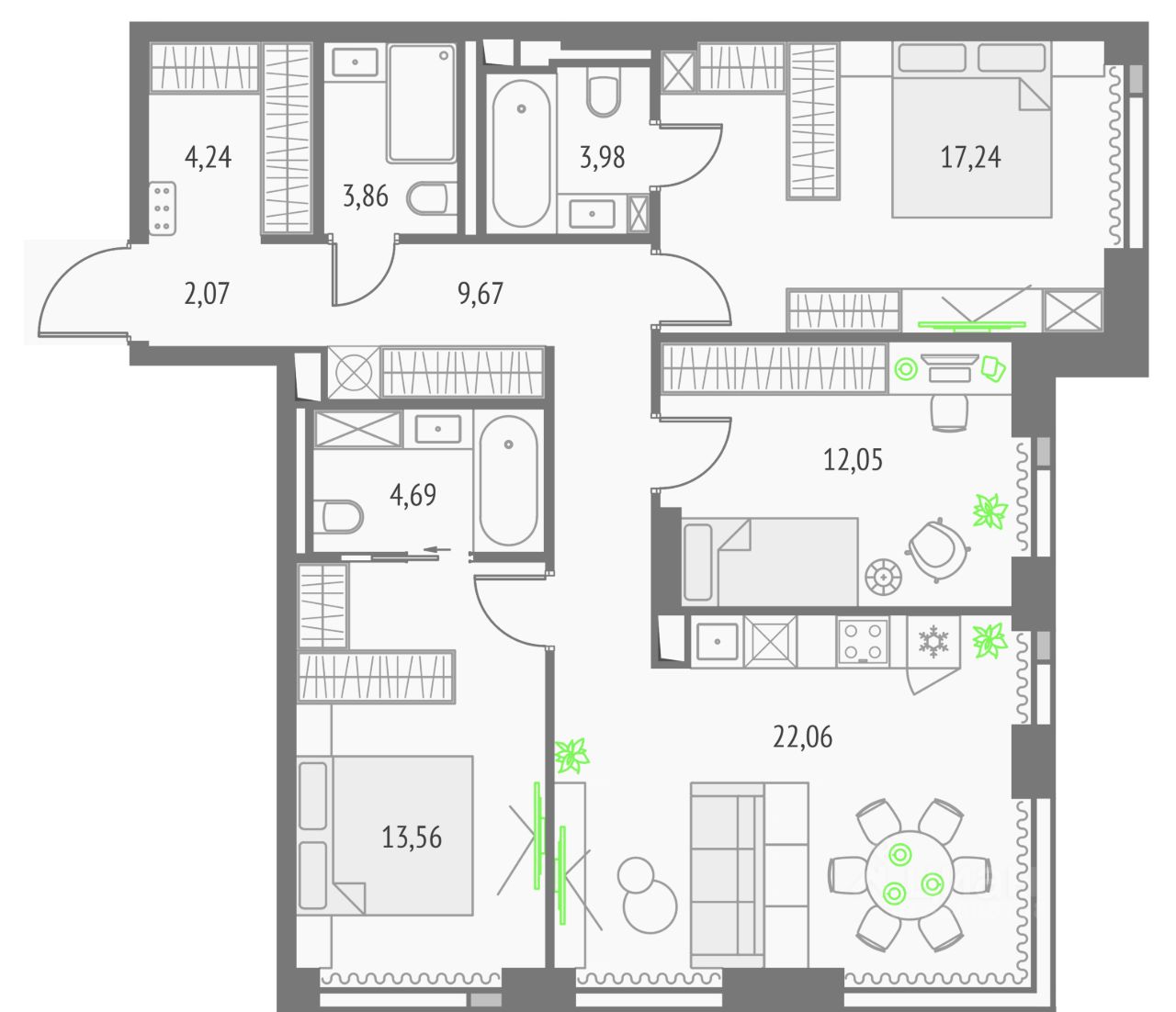 Покупая квартиру даже самого минимального размера в Upside Towers, вы получаете в пользование 2 000 м² бесплатных общественных пространств.