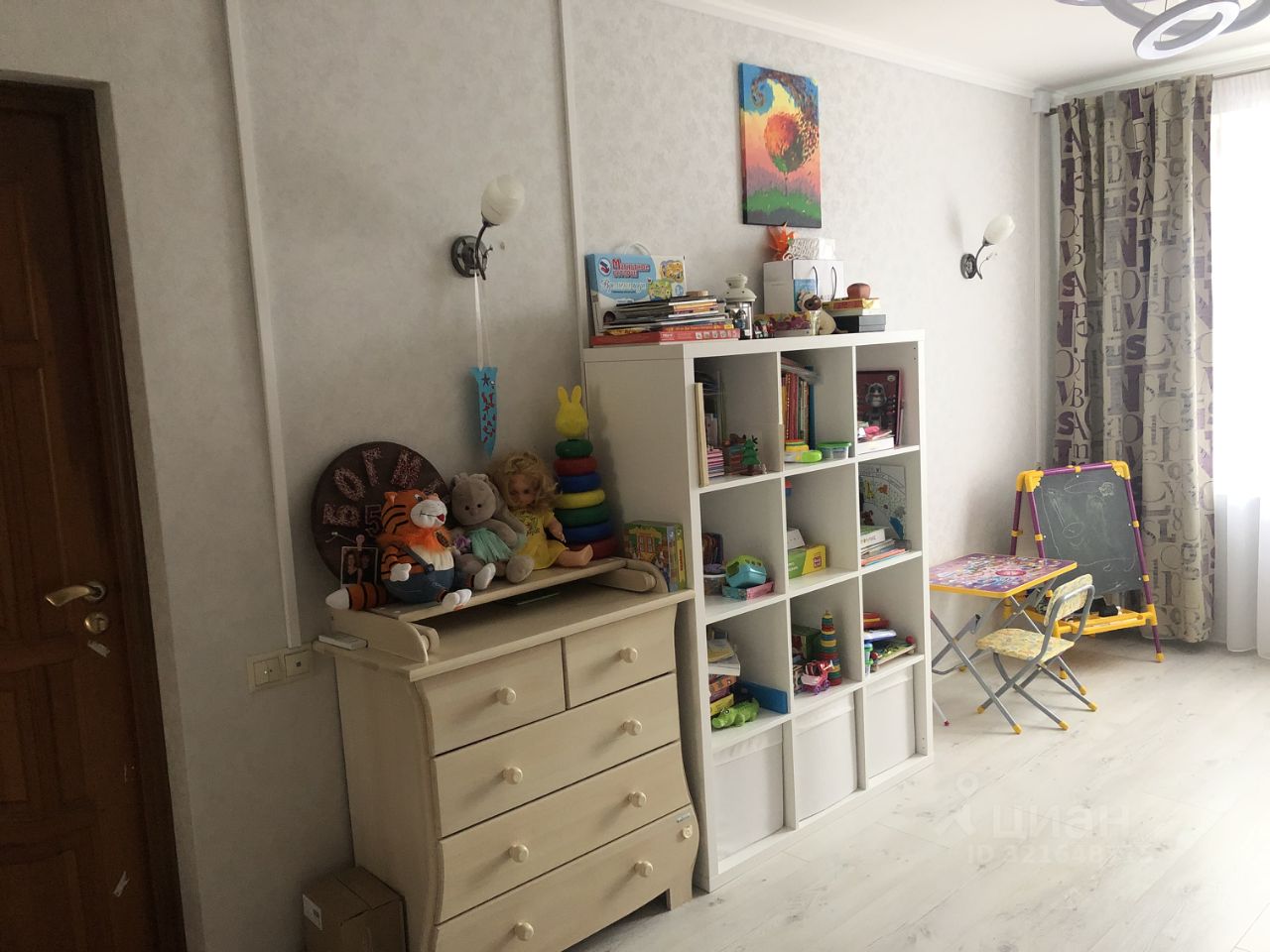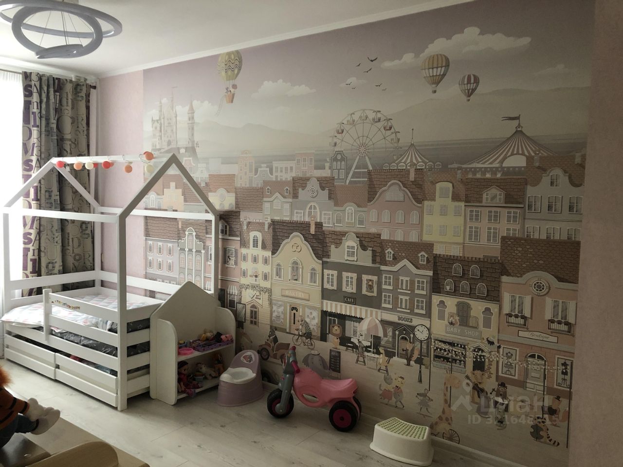 Косметический ремонт в комнатах. Большая детская со встроенным шкафом-купе во всю стену и интересным принтом на обоях. Стоят качественные пластиковые окна. Кондиционер. Очень удобный совмещенный санузел, перепланировка узаконена. В санузле установлен проточный водонагреватель. В квартире частично остается мебель.