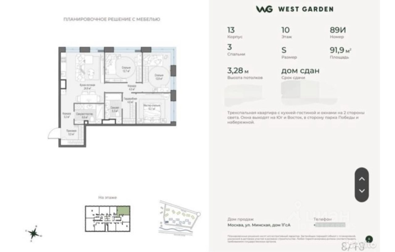 ЖК West Garden уникальный проект бизнес-класса, расположенный на территории престижного Западного округа, в зелёном и тихом районе вдоль улицы Минская, по соседству с респектабельными жилыми комплексами. Клубные дома находятся в просторном ландшафтном парке 16 га, на территории которого расположены детские площадки, спортивные площадки, зоны уединенного отдыха. Благоустроенная набережная длинной 2 км и площадью 8 га вдоль реки Раменки! Закрытый двор без машин, современный подземный паркинг. Красивейшие лобби с потолками 4 метра, стойкой ресепшен и премиальной отделкой! West Garden располагает богатейшей инфрастуктурой премиального уровня: бесплатный фитнес для жителей комплекса, детская игровая зона, уютная гостиная для встреч, консьерж- сервис!
