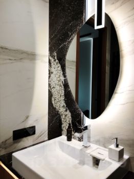 Квартира полностью меблирована, установлена вся необходимая встроенная бытовая техника: посудомоечная машина, духовой шкаф, индукционная варочная панель, двухкамерный холодильник, микроволновка, стиральная машина с функцией сушки в санузле, на кухне установлена трехступенчатая система очистки питьевой воды, полы в санузле и коридоре, а также подоконники оборудованы системой теплый пол. Вместительная функциональная гардеробная комната, изготовленная на заказ.