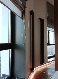 Высота потолков в чистовом исполнении 3 м, панорамные окна в пол, центральная вентиляция и кондиционирование, установлена система от протечек воды, проточный водонагреватель на время отключения горячей воды. Была проведена дополнительная герметизация оконных блоков, отсутствуют сквозняки и шум с улицы, в квартире очень тепло зимой.