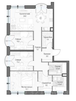 Просторную кухню площадью 24 м² — отличное место для совместных ужинов и приятных посиделок