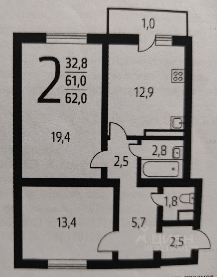 В свободной продаже просторная двухкомнатная квартира 64 м2: