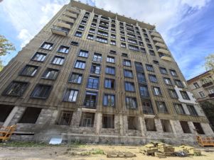 Двухсекционный дом. Консьерж, большая огороженная территория. Вентилируемый фасад. Окна отражающие ультрафиолетовое излучение.
