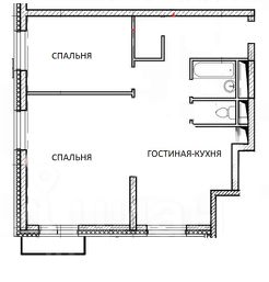 Функциональная планировка: гостиная-кухня + две спальни, гардеробная комната. Очень светлая квартира благодаря большим окнам, выходящим на две стороны.