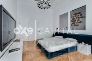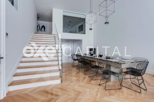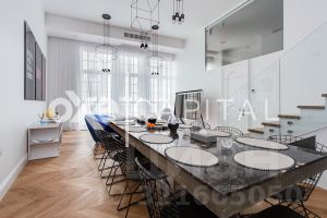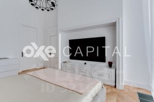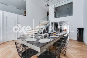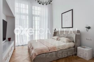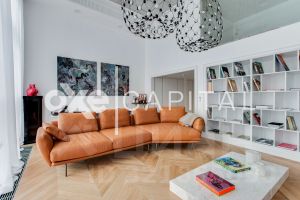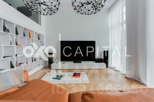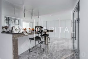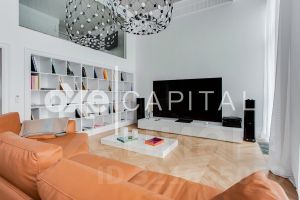 В продажу предлагается двухуровневая квартира с шикарной отделкой, выполненной из натуральных высококачественных материалов. Кухня оборудована бытовой техникой "Liebherr" и "Miele" Германия. Две гостиных комнаты (одна со столовой зоной). Полностью меблирована и декорирована. Винная комната на 1000 бутылок с зонированием.