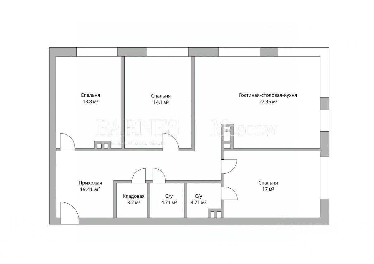 В квартире выполнена качественная отделка. Функциональное планировочное решение: просторная гостиная с зоной кухни-столовой, 3 спальни, 2 санузла, кладовая, большая.