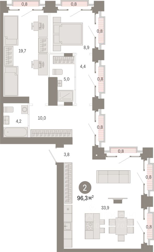 Архитекторы Брусники спроектировали несколько десятков планировочных решений. Квартиры с террасами на первых этажах, стилобате и крыше, двухуровневые пентхаусы, квартиры с мастер-спальнями, гардеробными, окнами в пол и французскими балконами.