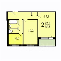 Объект 660578. Двухкомнатная квартира 44.8 м² с характером. Цена за возможность творить.