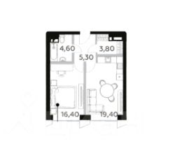Планировка: кухня-гостиная, спальня, гардероб, санузел