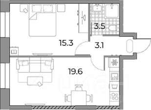Умная планировка: кухня-гостиная + отдельная спальня — максимально функционально на 42,5 м².