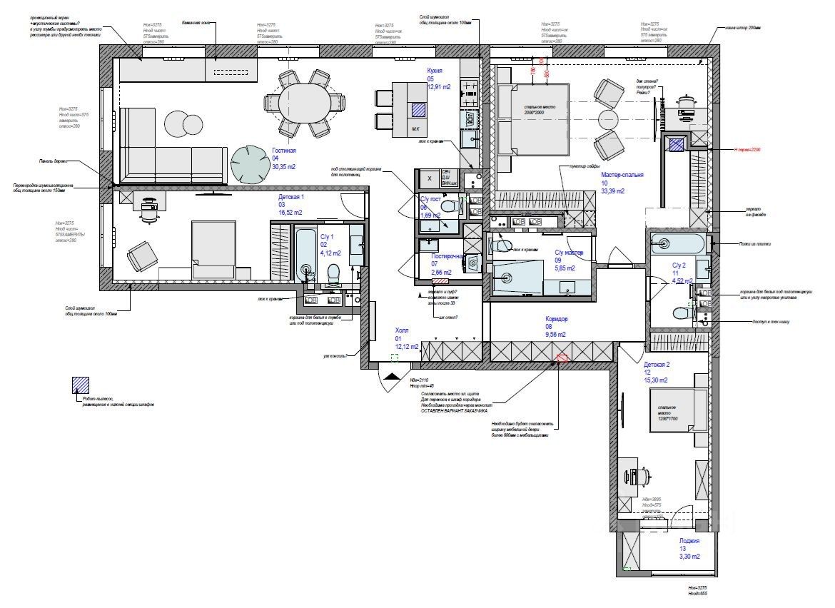 Среди приложенных фотографий есть фото с этапами черновой отделки, чтобы показать качество инженерных систем и пироги шумоизоляции, а также 3d изображения из дизайн-проекта.