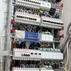 3. Выполнена черновая прокладка кабельной системы электрики, слаботочных систем, умного дома. Полностью смонтирован шкаф. Остается монтаж после окончания чистовых работ оконечных устройств (розетки, светильники, датчики, планшеты).