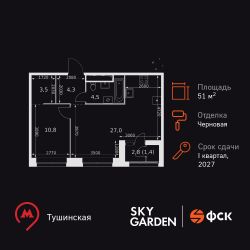 Всего в 12 минутах пешком до м. Тушинская и 15 минутах до станции Тушинская МЦД. На автомобиле: 2 км до Волоколамского шоссе, 2,5 км до МКАД и 15 км до Садового кольца