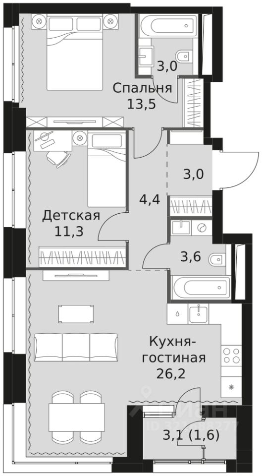 - Гибкая планировка - создайте пространство по своему вкусу.
