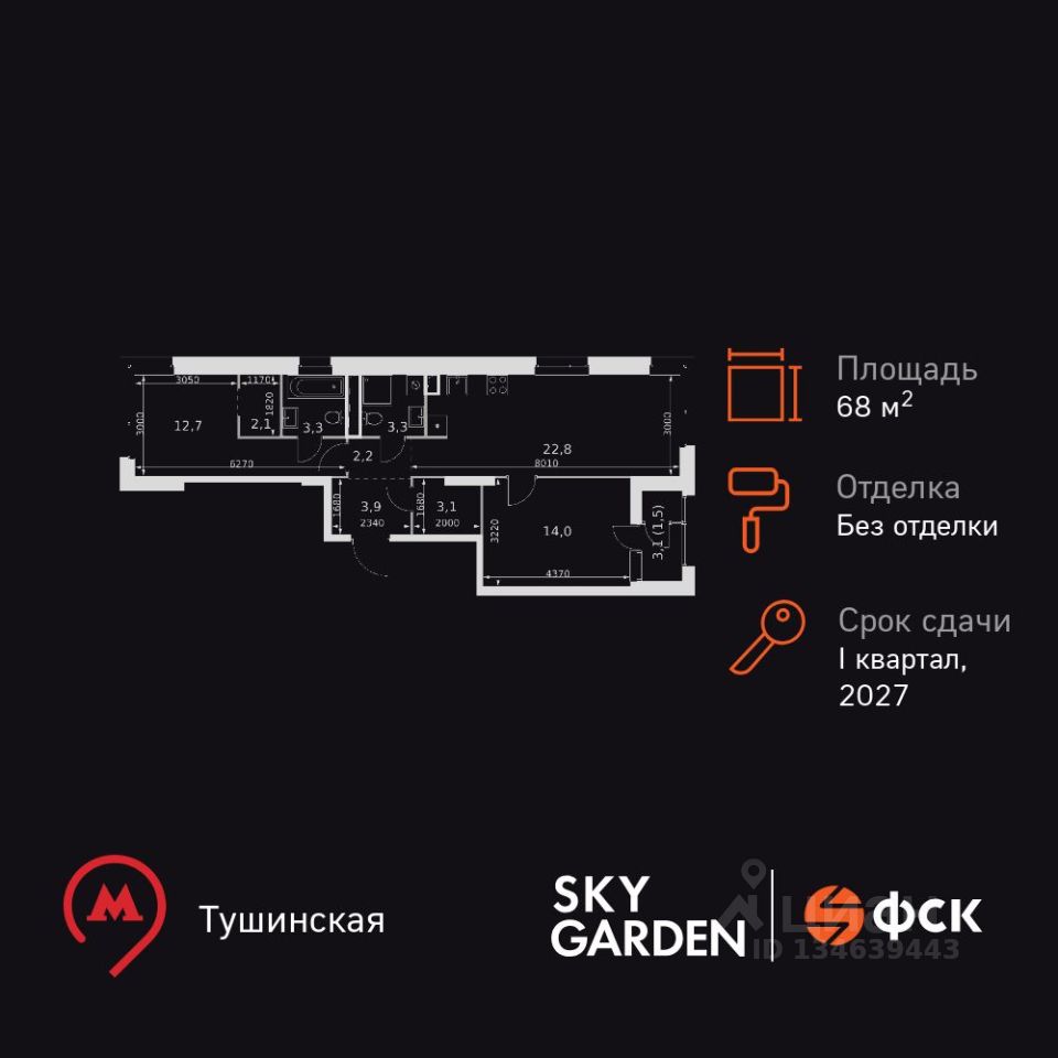 Продаётся 2-к квартира номер 655 общей площадью 68.9 кв.м. на 21-м этаже 44 этажного дома. Без отделки. Цена с учётом скидки!