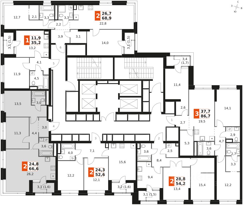 Продаётся 3-к квартира номер 539 общей площадью 66.6 кв.м. на 2-м этаже 44 этажного дома. Без отделки. Цена с учётом скидки!