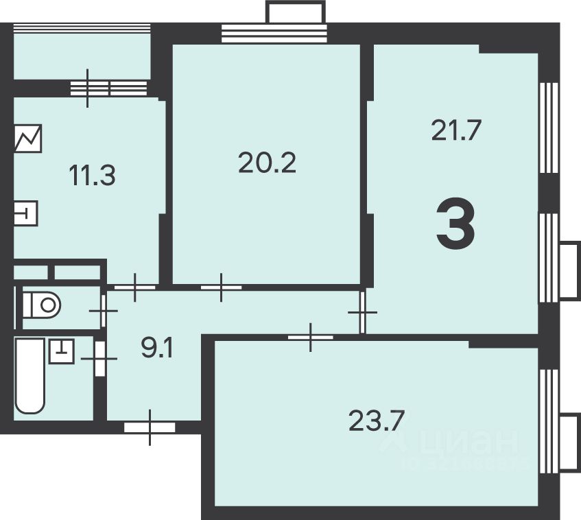 11,3 м²