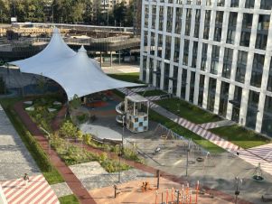 Жилой комплекс для тех, кто любит тихое зеленое место для жизни. Внутренний двор закрыт от посторонних, во дворе детские и спортивные площадки, зоны отдыха с шезлонгами на газоне.