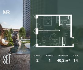 В ЖК SET продается 1-к квартира площадью 40.20 м², расположенная в корпусе 2, на 14 этаже 59 этажного дома.