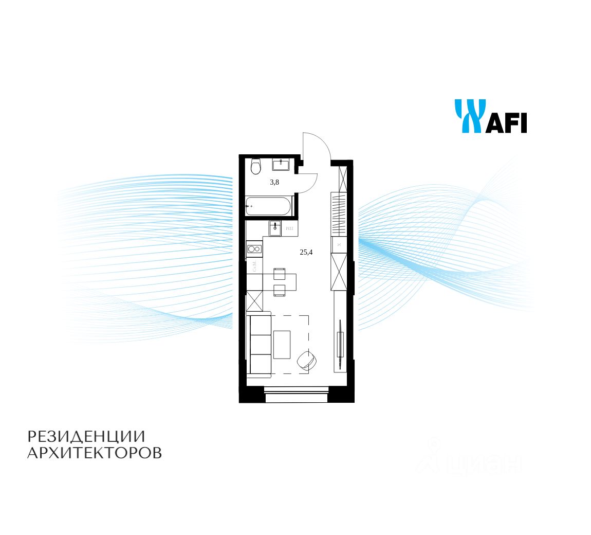 Продаются просторные апартаменты-студия общей площадью 29,2 м² на 11 этаже в сданном жилом квартале "Резиденции Архитекторов" вблизи с метро Электрозаводская и БКЛ Электрозаводская.