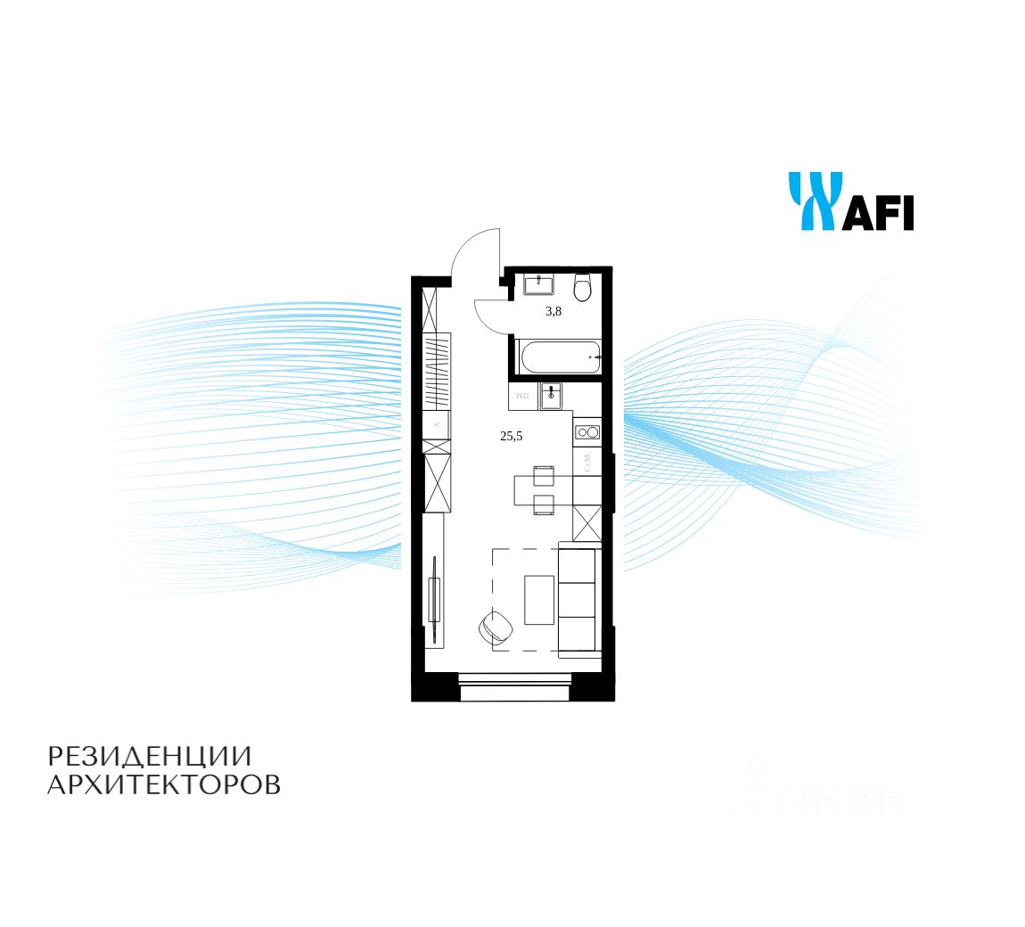 Продаются просторные апартаменты-студия общей площадью 29,3 м² на 11 этаже в сданном жилом квартале "Резиденции Архитекторов" вблизи с метро Электрозаводская и БКЛ Электрозаводская.