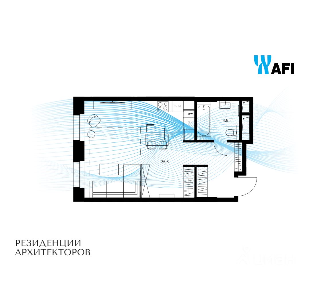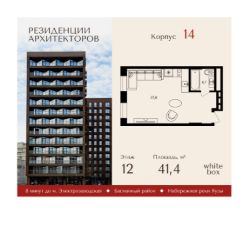 Продаются просторные 1-комнатные апартаменты общей площадью 41,4 м² на 12 этаже в сданном жилом квартале "Резиденции Архитекторов" вблизи с метро Электрозаводская и БКЛ Электрозаводская.