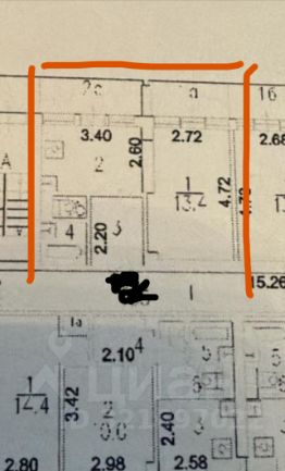 Высота потолков 2.64 метра.