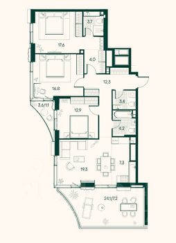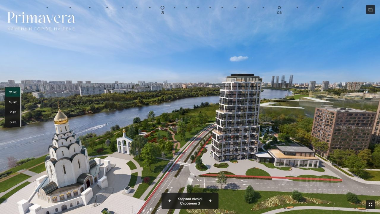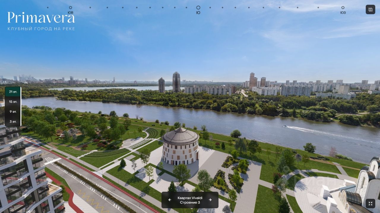 (первые 3 фото - рендеры вида из квартиры). Квартира с самой лучшей планировкой: большая кухня гостиная 34 кв.м с выходом на террасу 22 кв.м. с прекрасным видом на Москва реку и парк, спальня 14,7 кв.м с балконом 3,3 кв.м., угловая спальня 16 кв.м. и мастер спальня 17,2 кв.м. с сан.узлом 3,7 кв.м., прихожая с нишей для шкафа 11,6 кв.м., гостевой сан.узел 4,4 кв.м. и ещё один общий сан.узел 4,9 кв.м (можно изменить на гардеробную). Из квартиры открываются панорамные виды на парк Primavera, Москва реку и