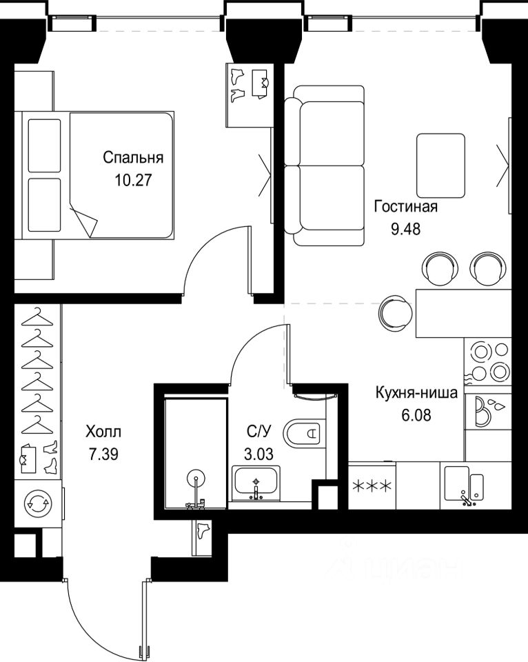 В ЖК SET продается 1-комнатная квартира площадью 36.25 м², расположенная в корпусе Б, на 16 этаже 59 этажного дома.