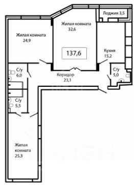 Квартира свободной планировки, без ремонт, Комнаты изолированные, 3 раздельных санузлов, лоджия.