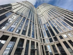 Территория закрытая и охраняемая, под видеонаблюдением; лобби высотой потолков 7 метров, скоростные лифты, зоны ожидания, подземный паркинг, консьерж-сервис, зона коворкинга.