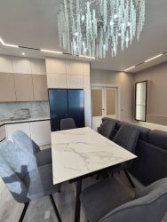 Современный дизайнерский ремонт позволит вам сразу же въехать и наслаждаться комфортом без дополнительных вложений. Наличие более чем одного санузла обеспечивает дополнительное удобство для большой семьи или при приеме гостей. Квартира удобна для семьи с детьми , есть 2 детские спальни и мастер спальня для родителей ( со своим санузлом с окном). Квартира оборудована добротной немецкой техникой.