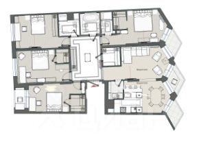 4 спальни (мастер спальня с гардеробной и с/у + 3 детские с гардеробными) , гостиная, кухня, 3 с/у , постирочная, 2 открытых балкона с видом на реку и на Сити , 2 закрытых утепленных балкона (кабинет, рабочая зона).