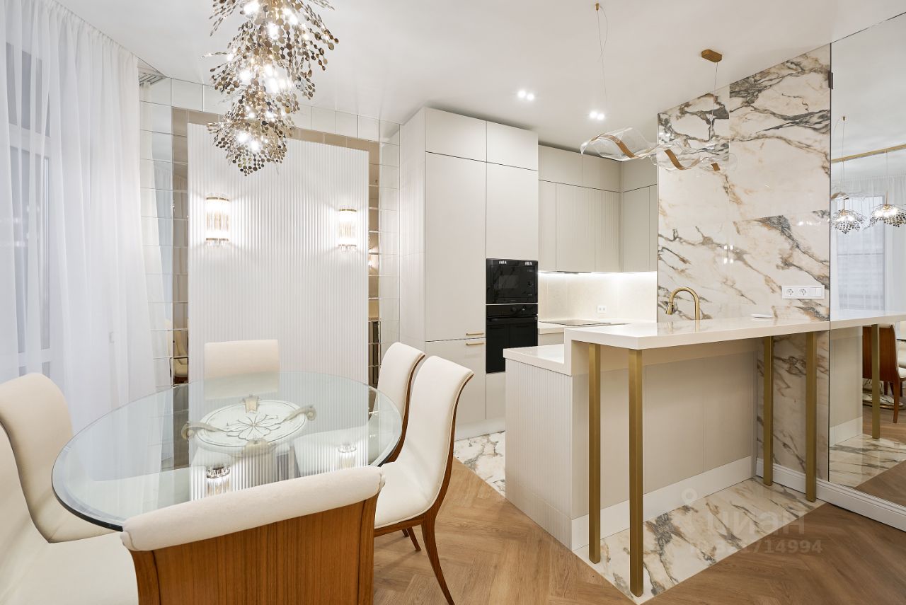 Дизайнерский ремонт в современном стиле. В отделке использованы материалы премиум класса, встроенная мебель, гардеробные на заказ, теплые полы, кондиционеры. Квартира полностью меблирована (уникальные предметы интерьера: французская мебель ручной работы, дизайнерское освещение и мебель из Америки), укомплектована техникой ( кухня: холодильник, варочная панель, духовой шкаф, микроволновая печь, посудомоечная машина, измельчитель отходов; постирочная: стиральная, сушильная машины, гладильная установка, беспроводной пылесос)