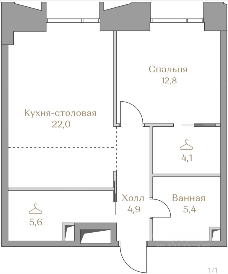 Квартира в клубном доме общей площадью 55.00 кв. м на 7 этаже.