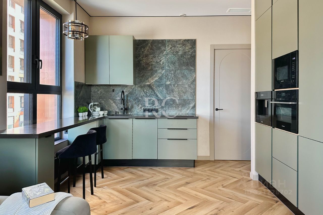 Планировкой предусмотрены: кухня-гостиная, 2 изолированные спальни, 2 санузла (раздельный и совмещенный), лоджия и зона прихожей. Квартира полностью укомплектована всей необходимой мебелью и техникой, а именно: варочная поверхность, холодильник, духовой шкаф, микроволновая печь, кофемашина, стиральная машина. В квартире установлена система фанкойлов.