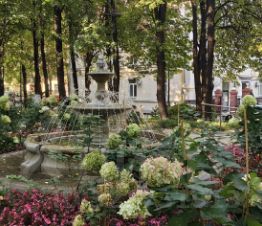 Все окна квартиры смотрят в тихий зелёный двор с фонтаном, выход на балкон из гостиной зоны.