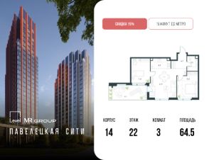 В Даниловском районе столицы (ЮАО) продаётся 3-комнатная квартира площадью 64.50 кв.м без отделки. Квартира расположена на 22 этаже -этажного корпуса 'Горизонт' в жилом комплексе бизнес-класса Павелецкая Сити. Высота потолков 3.00м.