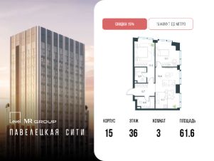 В Даниловском районе столицы (ЮАО) продаётся 3-комнатная квартира площадью 61.60 кв.м без отделки. Квартира расположена на 36 этаже -этажного корпуса 'Горизонт' в жилом комплексе бизнес-класса Павелецкая Сити. Высота потолков 3.00м.