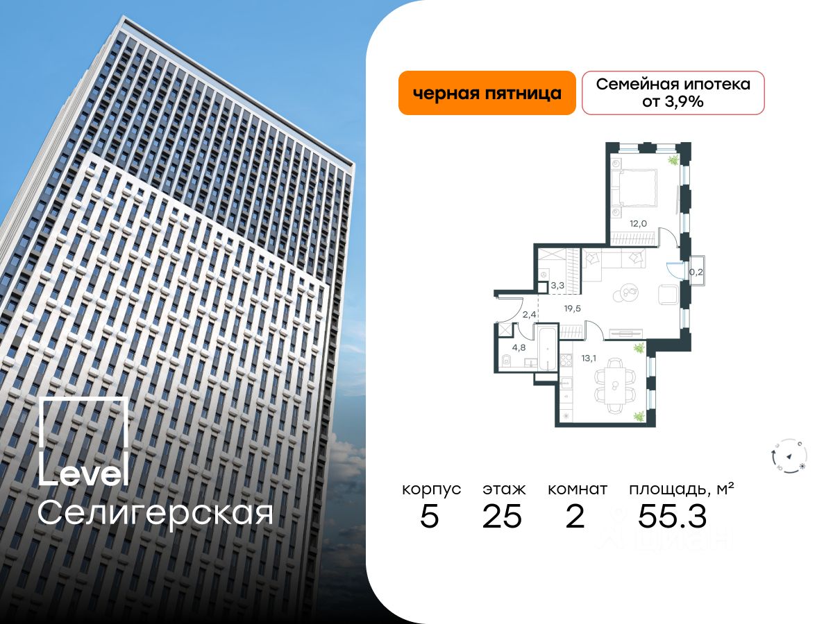В жилом квартале, расположенном в южной части района Западное Дегунино, продаётся 2-комнатная квартира площадью 55.30 кв.м без отделки. Квартира расположена на 25 этаже 40-этажного корпуса Корпус 5 в жилом комплексе комфорт-класса Level Селигерская (компания Level Group/Левел групп).