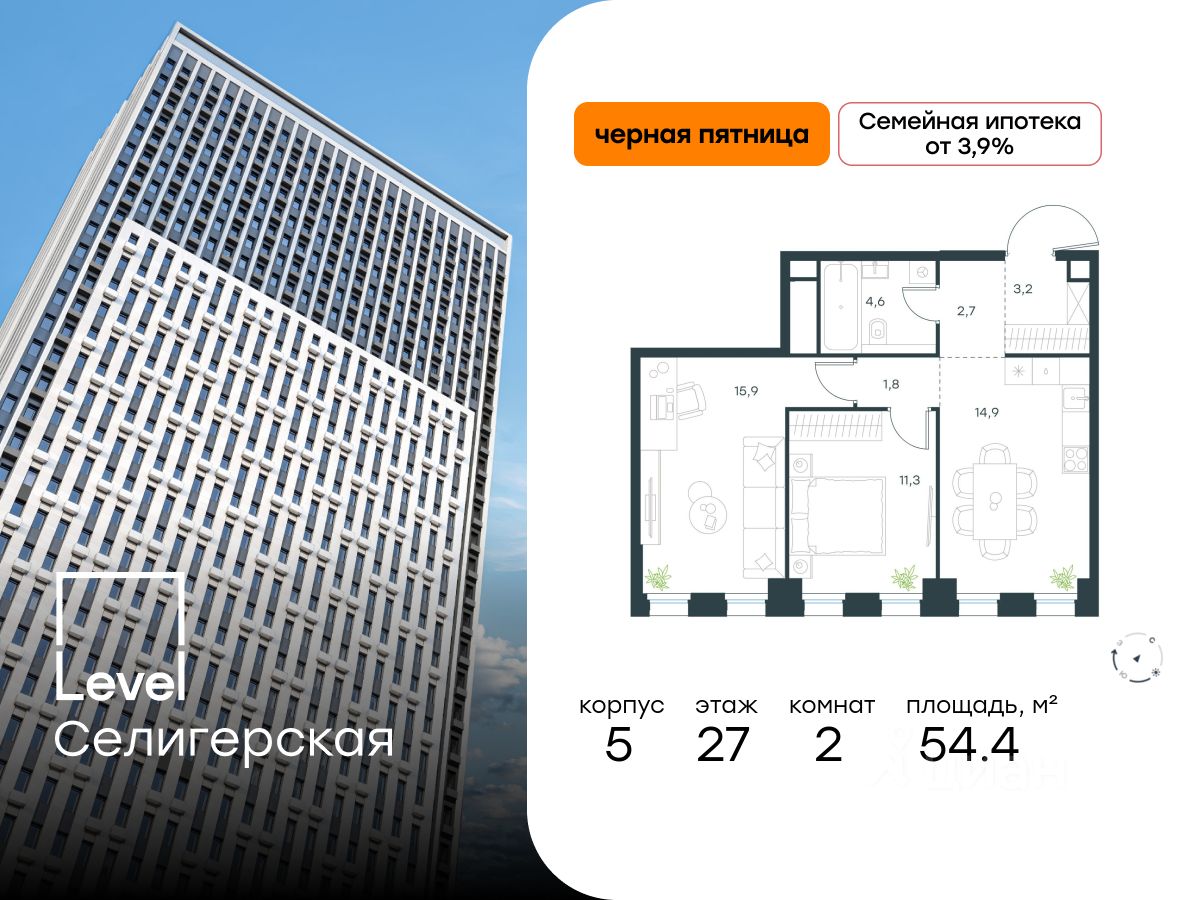В жилом квартале, расположенном в южной части района Западное Дегунино, продаётся 2-комнатная квартира площадью 54.40 кв.м без отделки. Квартира расположена на 27 этаже 40-этажного корпуса Корпус 5 в жилом комплексе комфорт-класса Level Селигерская (компания Level Group/Левел групп).