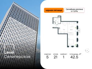 В жилом квартале, расположенном в южной части района Западное Дегунино, продаётся 1-комнатная квартира площадью 42.50 кв.м без отделки. Квартира расположена на 21 этаже 40-этажного корпуса Корпус 5 в жилом комплексе комфорт-класса Level Селигерская (компания Level Group/Левел групп).