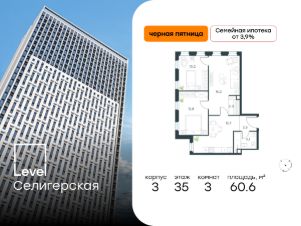 В жилом квартале, расположенном в южной части района Западное Дегунино, продаётся 3-комнатная квартира площадью 60.60 кв.м без отделки. Квартира расположена на 35 этаже 40-этажного корпуса Корпус 3 в жилом комплексе комфорт-класса Level Селигерская (компания Level Group/Левел групп).