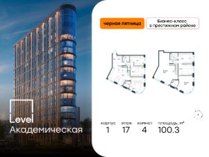 В Академическом районе продаётся 4-комнатная квартира площадью 100.30 кв.м без отделки. Квартира расположена на 17-м этаже 19-этажного жилого комплекса бизнес-класса Level Академическая (компания Level Group). В данной квартире вы можете оборудовать второй этаж (антресоль). Устройство антресольного этажа выполняется собственником самостоятельно как перепланировка квартиры. Нормативная площадь антресоли - не более 40% от площади квартиры.