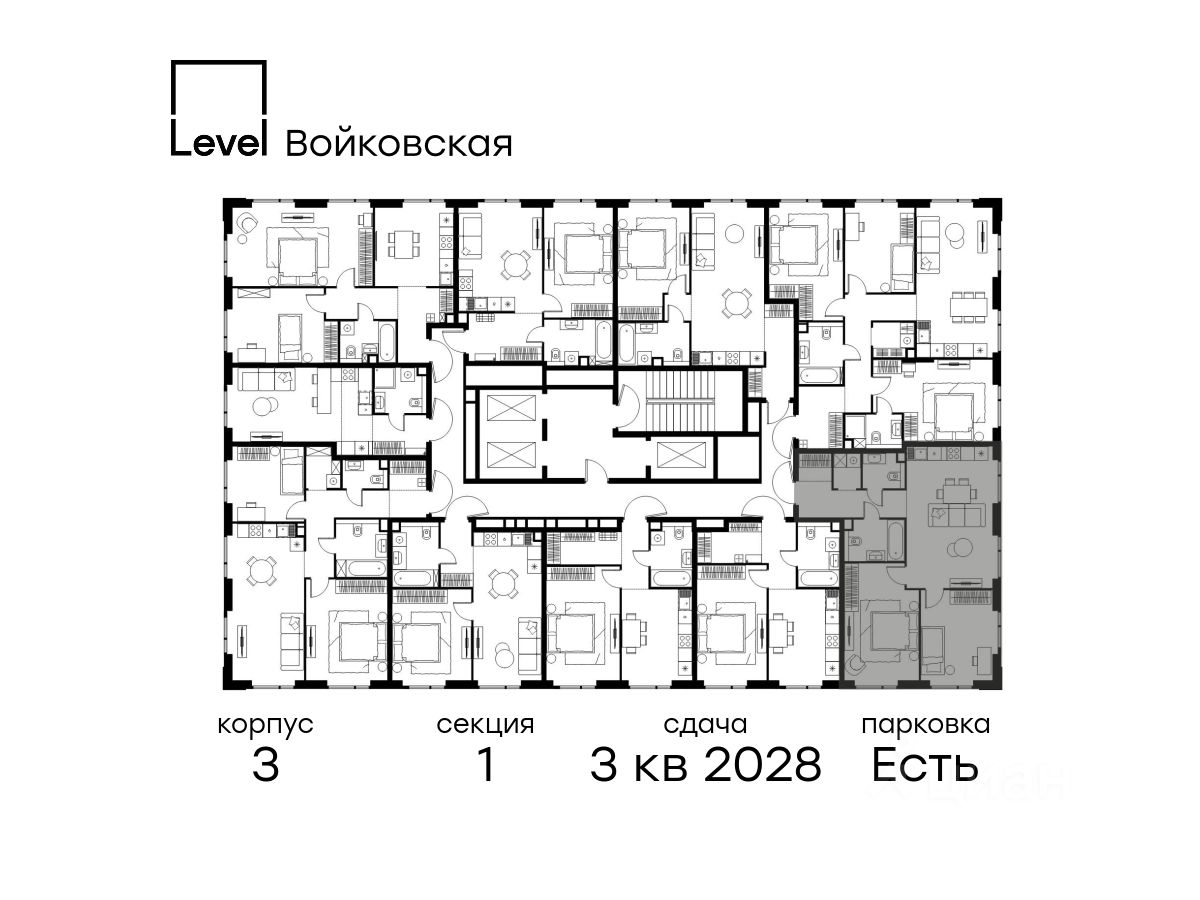 Продается 2-комнатная квартира площадью 71.20 кв. м без отделки. Квартира находится на 3 этаже 20-этажного корпуса Корпус 3, в жилом комплексе бизнес-класса Level Войковская, расположенном рядом с живописным заповедником "Покровское-Стрешнево" (застройщик - компания Level Group/Левел групп).