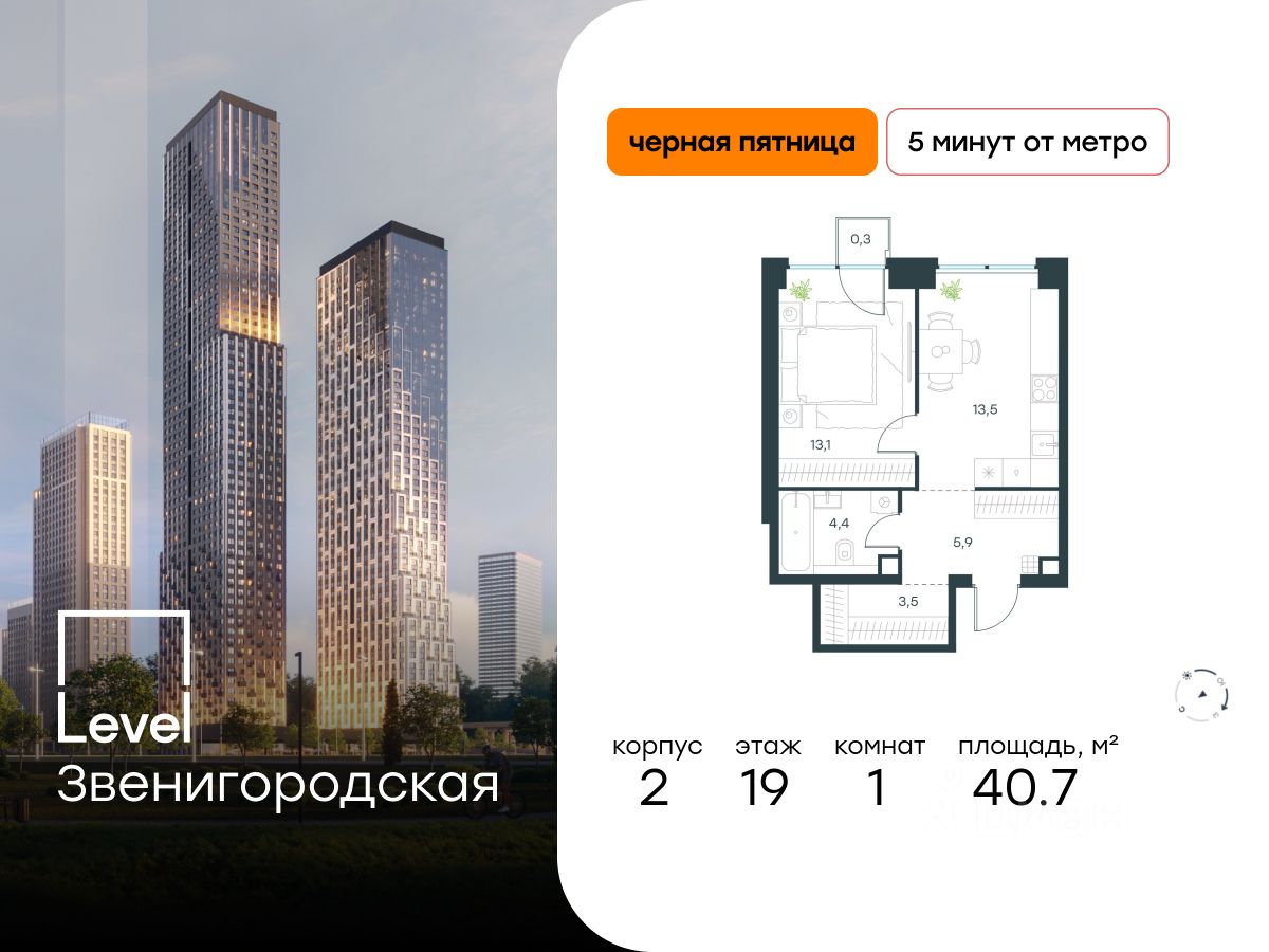 В престижном районе Хорошёво-Мнёвники продаётся 1-комнатная квартира площадью 40.70 кв.м нет. Квартира расположена на 19 этаже 64 этажного корпуса Корпус 2 в жилом комплексе класса комфорт+ Level Звенигородская (компания Level Group/Левел групп).