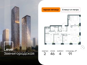 В престижном районе Хорошёво-Мнёвники продаётся 4-комнатная квартира площадью 91.00 кв.м нет. Квартира расположена на 46 этаже 64 этажного корпуса Корпус 2 в жилом комплексе класса комфорт+ Level Звенигородская (компания Level Group/Левел групп).