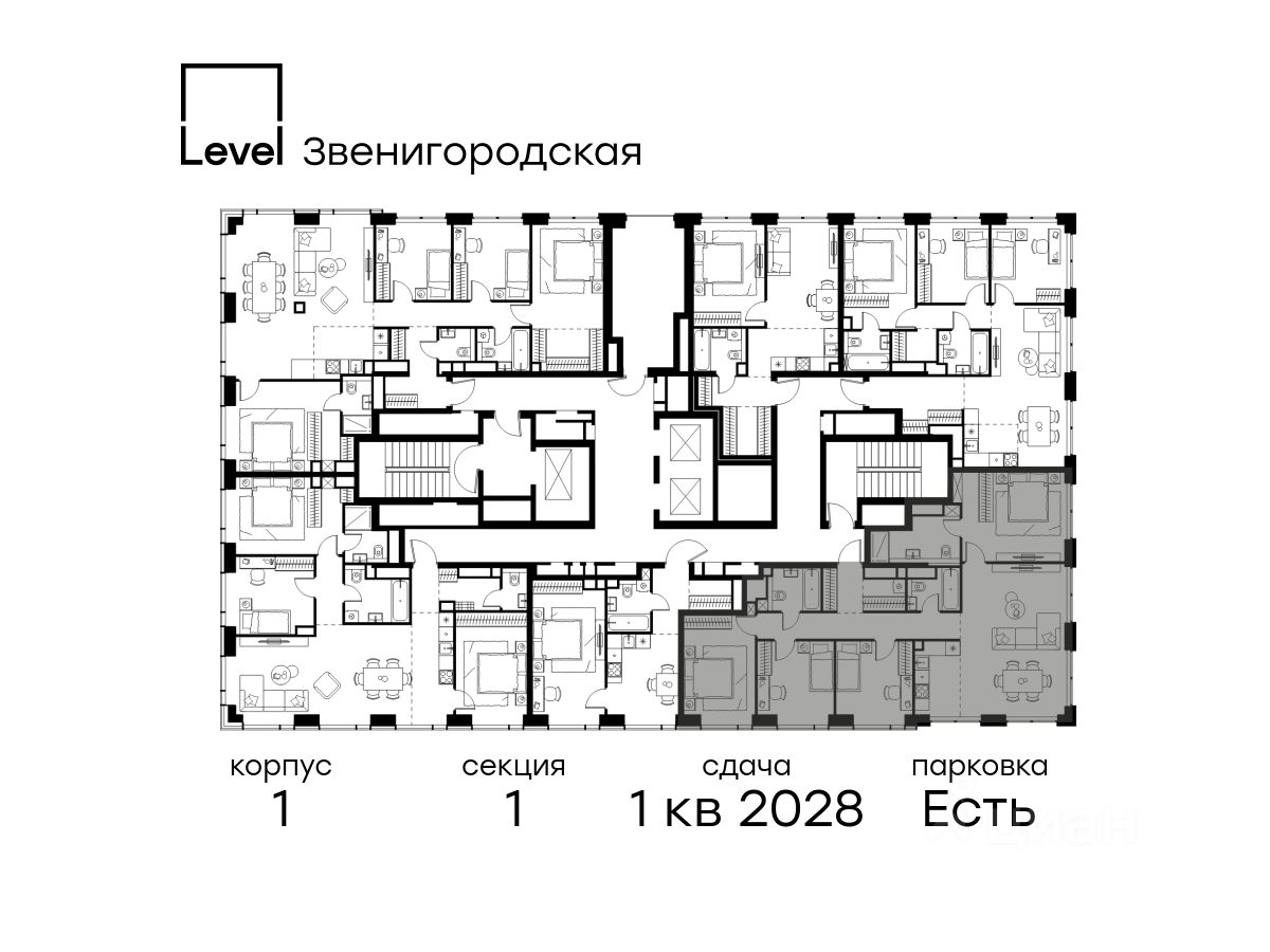 Этап 1 включает строительство двухуровневого подземного паркинга. Всего здесь расположится 351 машино-место, включая семейные места, 264 кладовых помещения для удобного хранения личных вещей.