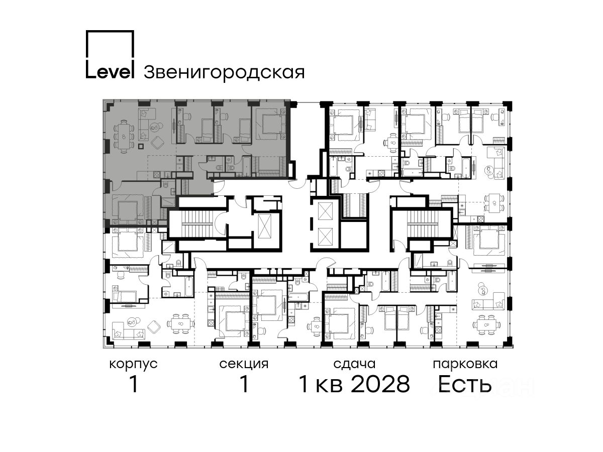 В престижном районе Хорошёво-Мнёвники продаётся многокомнатная квартира площадью 121.70 кв.м white box. Квартира расположена на 48 этаже 48 этажного корпуса Корпус 1 в жилом комплексе класса комфорт+ Level Звенигородская (компания Level Group/Левел групп).